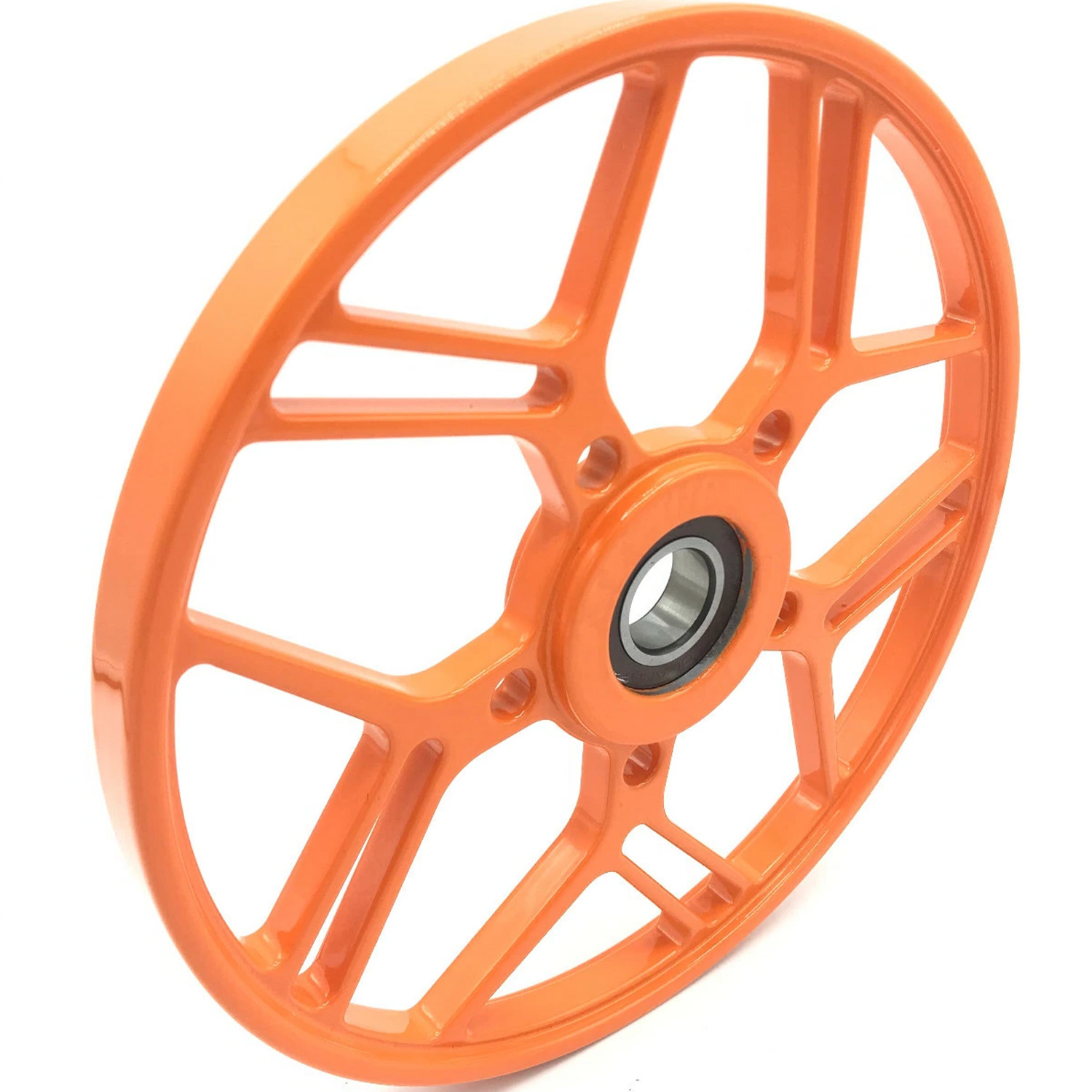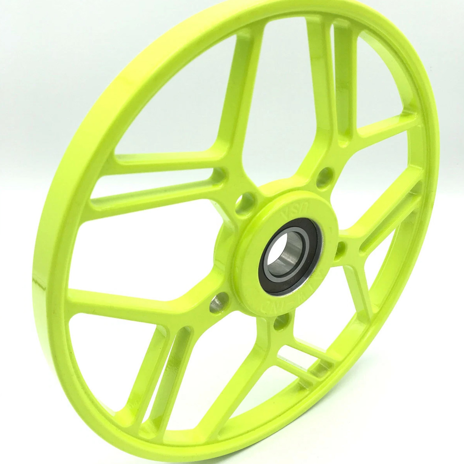 Upgrade your snowmobile’s suspension with these 8″ Billet Snowmobile Big Wheels 8″ HyperNova. CNC-machined from billet aluminum and available in multiple anodized and powdercoated colors, these oversized wheels reduce friction, improve track speed, and add a premium custom appearance to your sled. 100% MADE IN THE USA. Buy per quantity required on your sled! Only 13 ounces each.